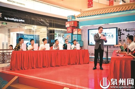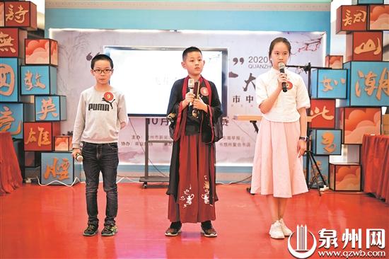 泉州网10月10日讯 (记者傅蓉蓉)10月8日,历时一个月的首届泉州市中小学“诗词少年”大赛在南益广场举行。从海选、半决赛脱颖而出的22名选手分中、小学组进行对决,展现个人风采和古诗词底蕴,呈现一场分量足、有看头的比赛。此次比赛由泉州市新闻出版局、丰泽区新闻出版局、东南早报联合主办,南益广场协办,泉州市学生记者团、书想所复合书店承办。