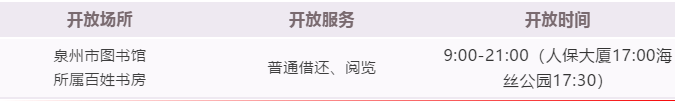 根据《福建省文化和旅游厅转发文化和旅游部公共服务司<公共图书馆、文化馆(站)恢复开放工作指南>的通知》精神和泉州市防控新型冠状病毒感染的肺炎疫情应急指挥部相关文件精神,结合市图书馆工作实际情况,自2020年10月12日起,我馆所属百姓书房将恢复开放时间,有关事项温馨提示如下: