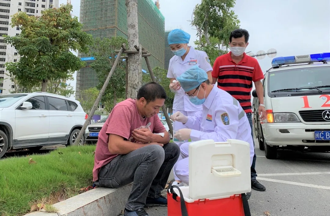 福建医科大学附属第二医院医护人员为伤者包扎