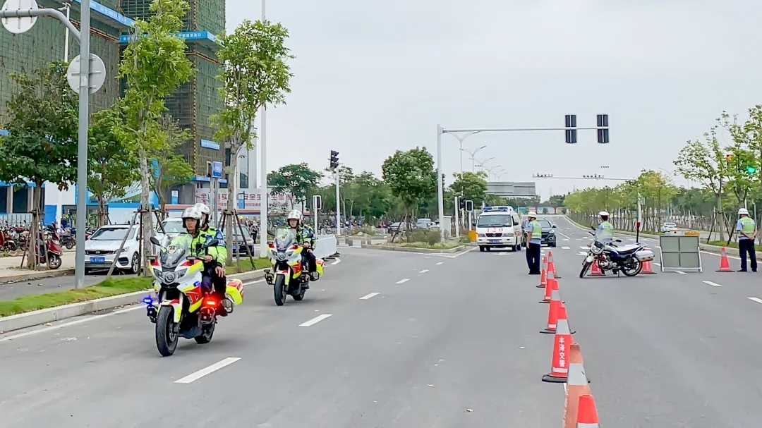 丰泽交警铁骑队员为救护车开道护航