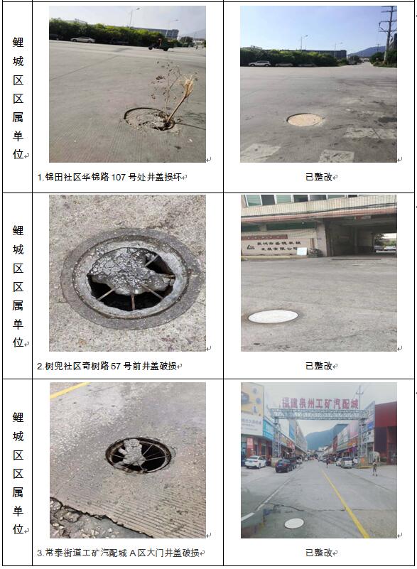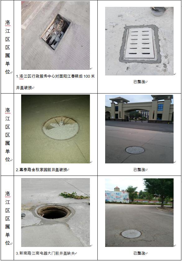 中心城区第127期井盖设施缺失及破损专项考评部分问题整改前后对比图