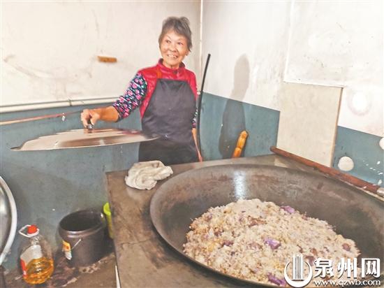 泉州网11月12日讯(记者 谢曦 通讯员 宋景旭 文/图)上午10点多,永春县湖洋镇吴岭村的“邻里守望堂”厨房一派忙碌景象。灶膛内柴火熊熊燃烧,用米、肉丁、紫薯等焖煮的咸饭散发出阵阵香气。厨房一角,一块木板上整齐地贴着八行姓名贴纸,最上面一行“吴岭村爱心午餐报膳处”10个大字尤为醒目。从2019年中秋开始,这个村年满60周岁以上的老人,每天都可以到“邻里守望堂”吃一顿免费午餐。