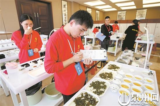 赛场上,茶香满溢,选手拼技能、比绝活。在经过茶形辨认、香味排序、对样评茶、品质审定、茶品设计等多个环节后,省直代表队赖凌凌和泉州代表队林镕钊荣获一等奖。“从5个茶样中,排除一个干扰样,辨认其余4种茶叶中,哪一个与标准样的风格、风味、汤色最接近,误差率仅5%上下。这对评茶员的技能要求很高,不能有一个细节出现差错。”回顾竞赛过程,不少选手认为,竞赛对选手的技能考察十分全面,挑战性大。
