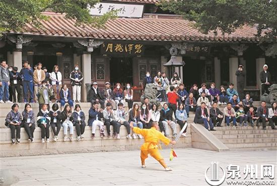 华侨境外新生走进泉州少林寺(华侨大学旅游学院 供图)