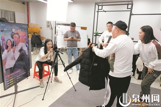 “双十一”期间,泉州网络销售火热,在石狮国际商贸城狮城众创直播生态圈内,主播正在推介产品。(李荣鑫 陈起拓 摄)