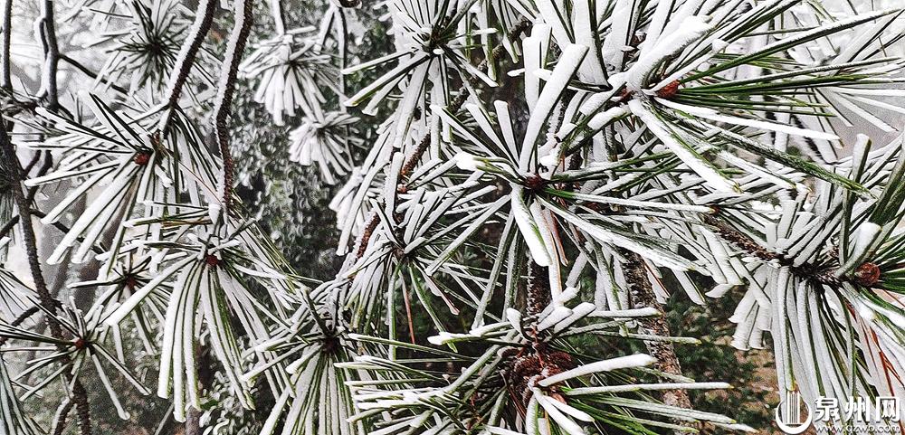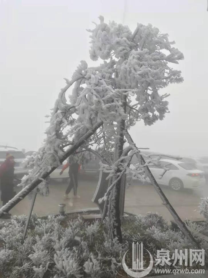 泉州网12月30日讯 九仙山开始下雾凇,昨晚11点多开始降温,早晨4.14分温度进入零下,目前-2.8度,温度还继续在降。(连瑞漂 王柏峰 陈小芬 庄丽祥 摄)