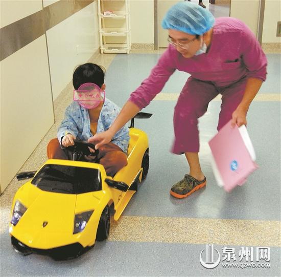 在市儿童医院,医生用“豪车”载小朋友进入手术室,缓解孩子的手术恐惧心理。