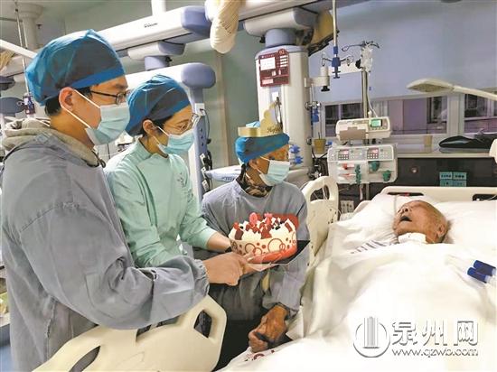 在市中医联合医院,医护人员为住院患者过生日。