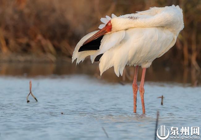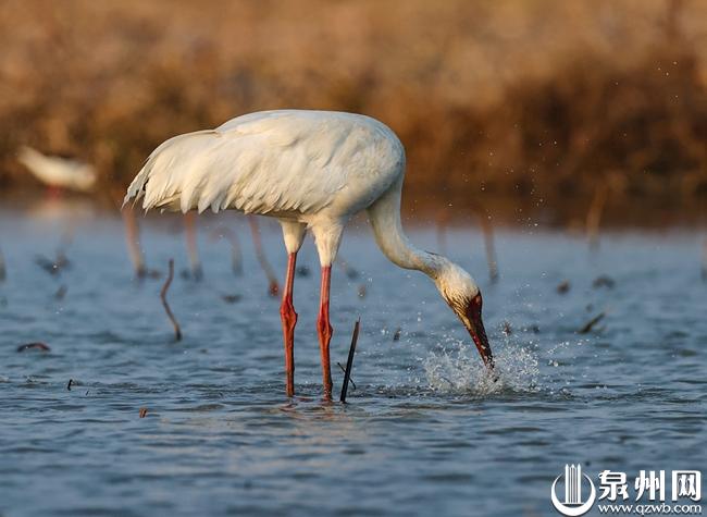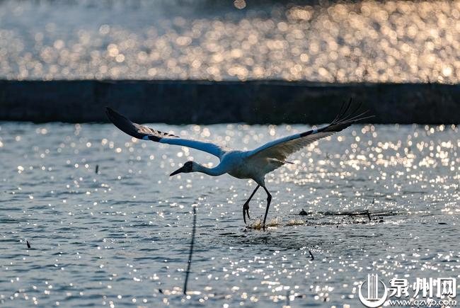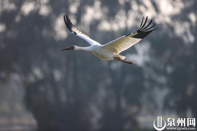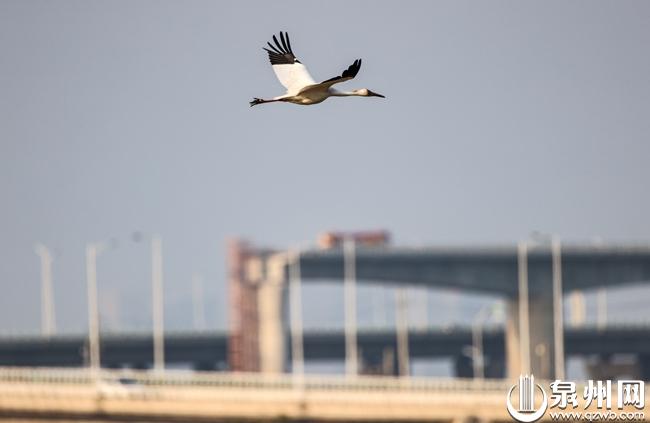 在泉州市林业部门公布的本市国家一级保护鸟类中,此前仅有黑鹳、黄腹角雉两种,白鹤的加入,使之增至三种。气质出众、自带仙气的白鹤被誉为鸟类“活化石”,全球不到4000只,是濒危灭绝的鸟类之一,属我国国家一级保护动物。(记者 陈英杰 摄影报道)