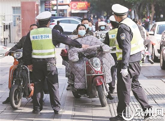 交警提醒,电动自行车交通违法看似比机动车违法来得更轻微,可一旦发生事故,后果往往较为严重。希望广大驾驶员能自觉遵守《泉州市中心市区电动自行车管理办法》规定,自觉佩戴安全头盔,不逆向,不超员,不闯红灯,不违法闯入机动车道,在享受电动自行车带来出行便利的同时,也给自己和他人多增加一份安全的保障。