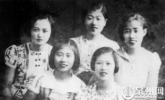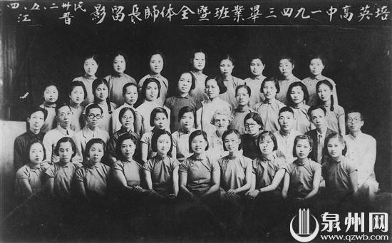泉州培英高中1943年毕业班暨全体师生留影(后排从左第一位为陈珍珍)