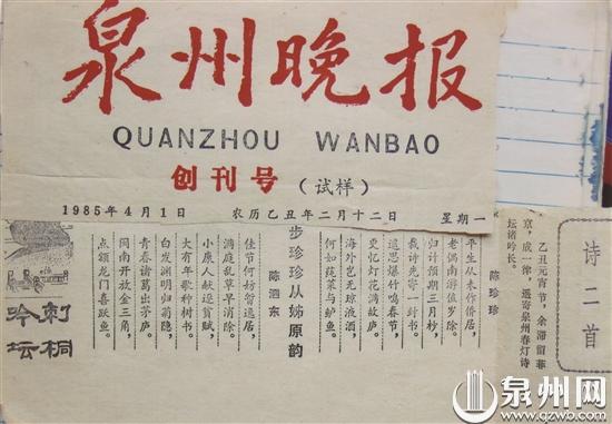 陈珍珍先生发表在《泉州晚报》创刊号(试样)上的诗词