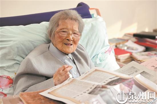 102岁的陈珍珍先生现在仍保持每天5点钟早起诵经读书的习惯(陈起拓 摄)