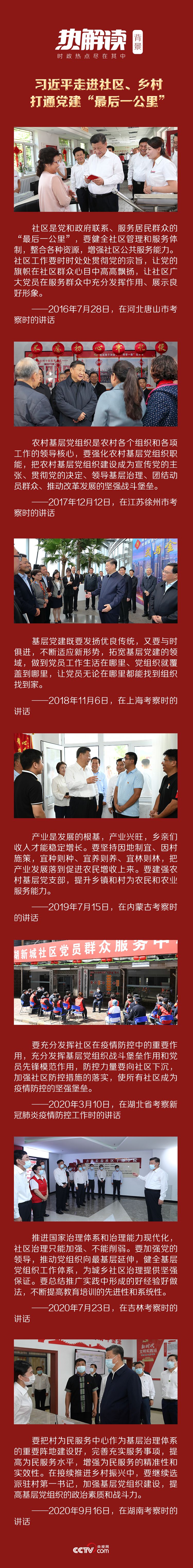 党的十八大以来,从社区服务中心到党员活动室,从社区干部学院到村服务中心……习近平总书记深入农村,走进社区,不断通过打通党建“最后一公里”,全面加强党的建设。