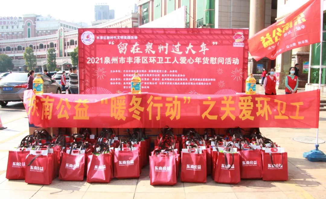 据悉,本次活动由丰泽区委文明办、东湖街道党工委、办事处、泉州城建城市运营有限责任公司、泉州市东南公益协会主办,东湖街道东湖社区党委、居委会、泉州晚报社志愿服务队、泉州商城志愿服务驿站承办,泉州新华都购物广场有限公司、五常市乔府大院农业股份有限公司福建分公司、晋江市陈埭镇中和农场等爱心企业协办。活动的所有慰问物资均由爱心企业捐赠。