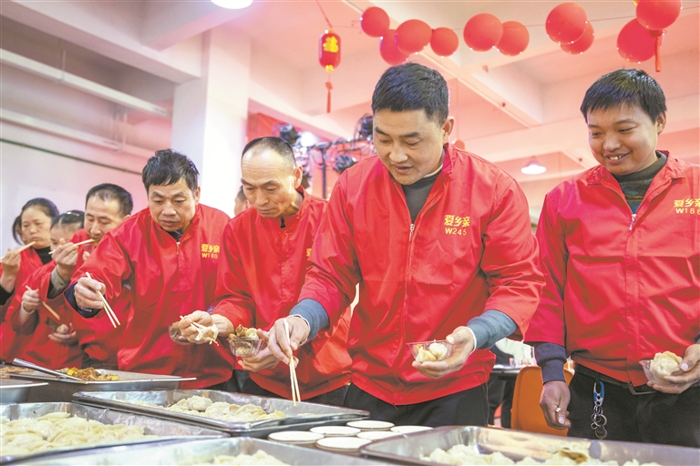 “人间烟火气,最抚凡人心。”共享丰盛的年夜饭,是除夕之夜最温暖人心的习俗。昨日,在爱乡亲食品公司,来自贵州、四川、湖南、江西、安徽、福建等省的员工代表一起动手,烹饪各自的家乡美食,大家以分餐、自取的方式共享美食,感受各地的年味,既增添过年的喜气,又避免浪费。