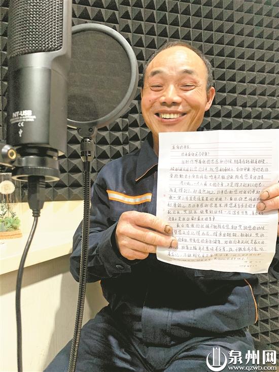 除夕前夕,本社旗下新媒体泉州通客户端推出《一封家书 留泉过年》的活动,获得了各个不同岗位留泉过年人员的响应。他们以字为媒,以声传情,表达着对远方亲人的思念。来自重庆的潘久富是一名垃圾转运站的工人,在泉州工作生活多年。受疫情影响,今年他和同是环卫工的妻子又不能回家与岳母团聚。憨厚朴实的他手写了一封信给岳母。他在信中写道:“妈妈,我打心底感激您,回想那一年,我还是一个一穷二白并且负债累累的毛头小伙子,是您把宝贝女儿嫁给了我。这是一个温柔贤惠、善良大方、对我体贴照顾的妻子,这样的恩情,儿子永远都会记在心里。我们在泉州一切都好,请您放心、安心。”