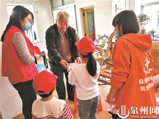 小朋友与志愿者们一起将汤圆、节日祝福送给社区的老人家。