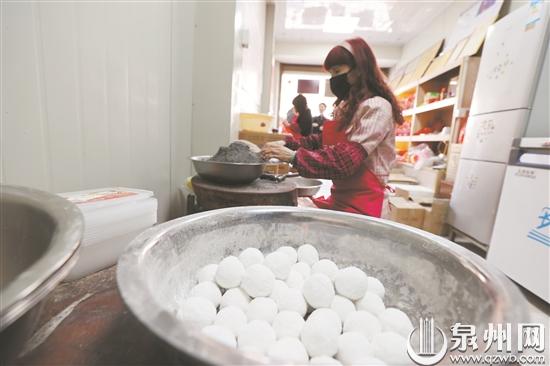 元宵节当天,泉州人习惯吃上一碗热气腾腾的元宵圆。泉州元宵圆制法独特,以炒熟的花生仁去膜捣末,加上白糖、芝麻、蜜冬瓜、金桔泥、拌以焗葱白的熟猪油、香蕉油(香料),捏成丸馅,沾湿后置于盛有干糯米粉的盘中,反复数次滚转而成,煮熟后食之香甜而不腻。