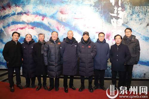 蔡国强(中)与张艺谋(右三)等在展览现场( 陈智勇供图)