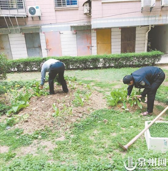 物业人员清理整治“绿地菜圃”
