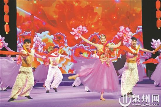 昨晚,泉州歌舞剧团在泉州南音艺苑献上了一场精彩的闽南民间音乐舞蹈艺术展演。该团将近年来创排的优秀歌舞进行重新编排,看点十足,给现场观众带来全新的视听盛宴。整场演出由《盛世欢腾》拉开序幕,紧接着《踏歌起舞》《海市蜃音》《掀起你的盖头来》《茉莉花开》《锦绣中华》等十余个节目接连上演,有欢歌,也有热舞。值得一提的是,参与这场演出的不少舞蹈演员前不久才参加央视春晚表演,这回,让现场观众在家门口欣赏高水准的舞蹈。