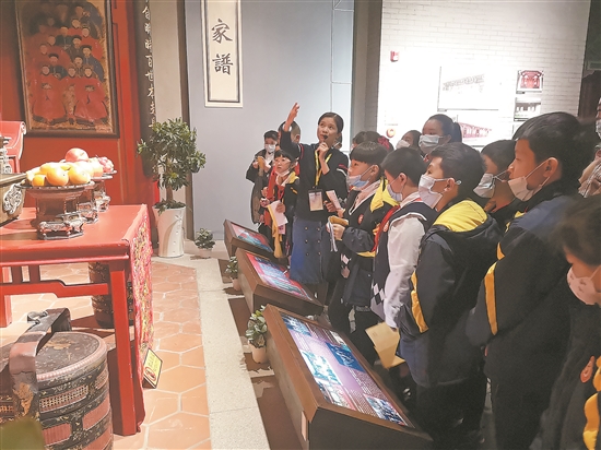 泉州网讯(记者 傅蓉蓉 通讯员 蔡玲玲 文/图)2月2日、21日,鲤城区第五实验小学的学生记者们分批走进中国闽台缘博物馆,跟随博物馆讲解员赵瑜和志愿讲解员黄芳萍的脚步,从冰河时期穿越到近现代,通过一系列文物、图片和动态影像等,学习闽台“五缘”,“阅读”海峡两岸漫长的历史,感受两岸情缘。