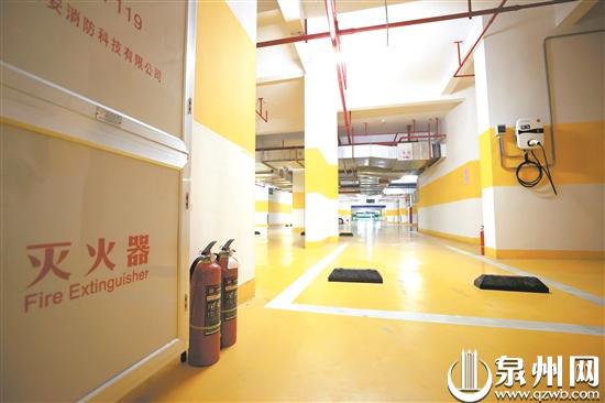 日前,在2019年9月交房的鲤城区高山花苑小区地下停车场内,记者看到,除了停车位外,还规划一处位置统一安装充电桩,总共有20个,目前有个别业主在使用。