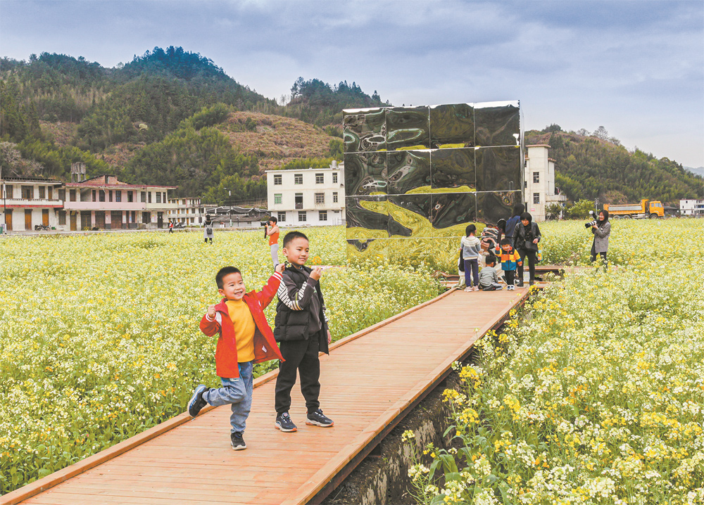 孩子们在油菜花田嬉戏,流连忘返。