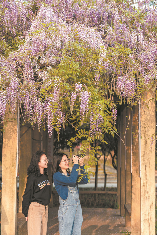 美湖镇紫藤花开满长廊