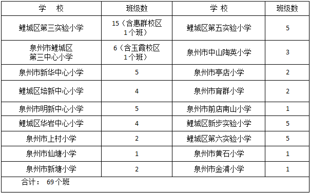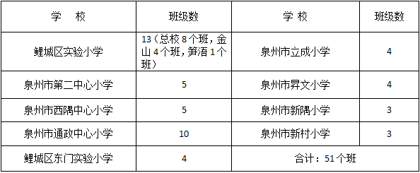1.招生计划略有增加。今年鲤城区老城区9所公办小学计划招收51个班的小学新生;江南新区18所公办小学计划招收69个班的小学新生,比去年略有增加。4所民办小学计划招生950人。