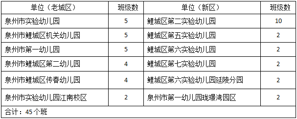 1.新增1所公办幼儿园和3所普惠性民办幼儿园。公办园方面,12所公办幼儿园共招收45个班幼儿,比去年增加4个班:新增泉州市第一幼儿园珑璟湾园区(招2个小班)并确定服务片区,同时,泉州市第一幼儿园、鲤城区第二幼儿园各扩招1个班。新增鲤城区大红鹰幼儿园、金龙大地幼儿园、江南培艺幼儿园3所民办幼儿园。全区共有85所公、民办幼儿园,共招收217个班幼儿。各公办幼儿园招生计划数: