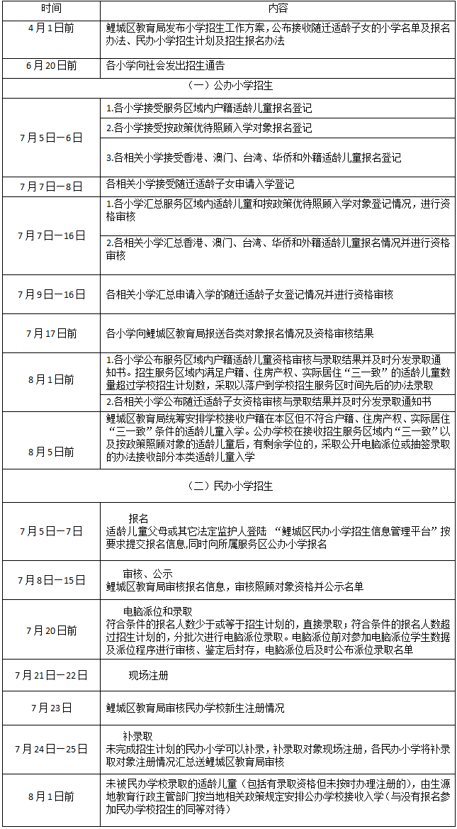 8月1日前:各公办性质幼儿园公布服务片区内适龄儿童资格审核结果并分发录取通知书。如需采取公开电脑派位或抽签等办法录取的按文件中招生办法的具体要求进行。
