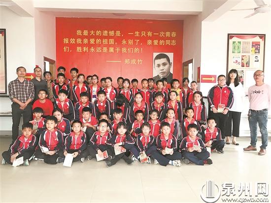 3月31日中午,南安市峰山小学四至六年级的48名同学,在学校老师们的带领下,步行20多分钟,来到南安官桥镇成竹村,参观成竹革命史迹纪念馆。“带着孩子们来这里学习,缅怀革命先烈,表达崇高敬意,引导他们要珍惜学习机会,传承革命精神。”峰山小学校长李火波说,此前,学校曾邀请熟悉郑成竹事迹的许玉模老人,到学校开展红色教育,给孩子们讲述革命先烈事迹。