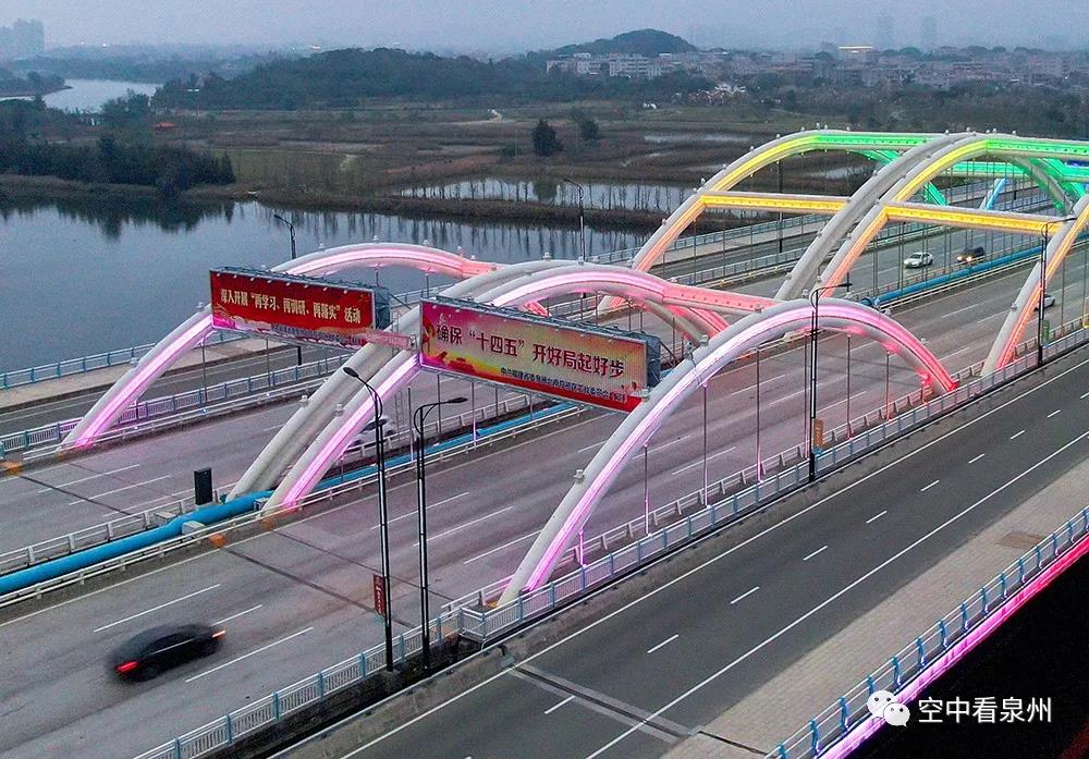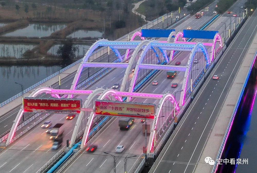 最近,从泉州市区东海片区经后渚大桥前往泉州台商投资区,笔者发现东西大道百崎湖大桥亮起了五彩缤纷的夜景灯光。原来,台商区正持续实施夜景提升工程,百崎湖大桥属于夜景亮化示范区域,前些天夜景工程刚刚完工。那么,作为示范区域,夜幕降临时,这座大桥的夜景会带给我们什么样的视觉感受呢?(陈起拓/文图)