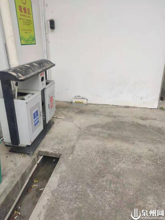在泉州海关驻泉港办事处,禁烟广告牌已有折皱现象,广告牌旁边垃圾桶设置不规范,周边草地还丢弃着不少烟蒂;该单位没有设置“无烟单位”标识,也没有在醒目位置设置吸烟区指示牌;吸烟区排水沟可见烟蒂,垃圾桶形同虚设。检查人员要求该单位对照国家卫生城市标准,提高认识,负起控烟责任。相关人员表示立即整改。