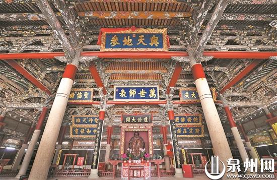 “重檐庑殿顶、黄色琉璃瓦、龙纹柱身、通饰彩绘,这是最尊贵的宫殿建筑形式。泉州文庙及学宫的规格之高,为全国孔庙罕见。”每一次仰望大成殿,泉州府文庙文物保护管理处负责人何振良,都忍不住由衷感叹。