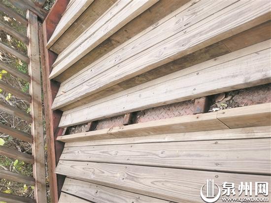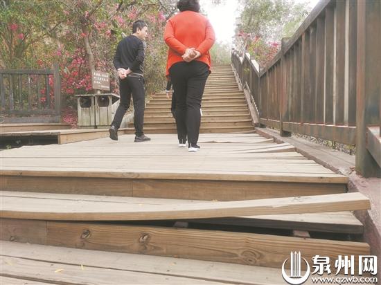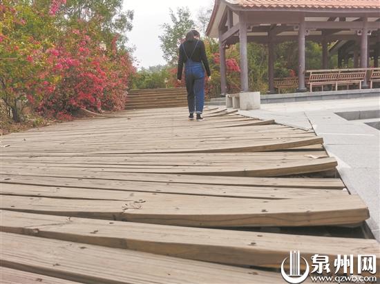 泉州网4月15日讯(记者 张晓明 实习生 刘熠烨 文/图)“桃花山公园木栈道又坏了。说好的使用一二十年呢?”近日,有市民致电泉州晚报社24小时热线96339吐槽道。