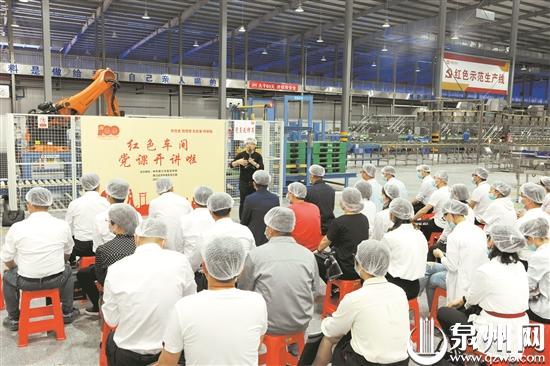 与会企业员工共同到福建盼盼饮料有限公司聆听晋江市委党校高级讲师洪荣福讲授的一堂党史课