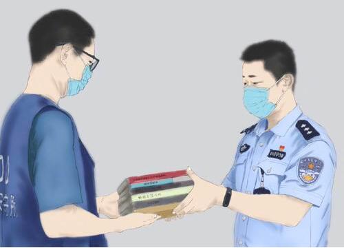 送书籍进看守所,教育感化受监管人员。(南安市看守所林春霞绘)