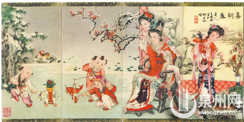 读书时,家中出现另一套年历卡:4位古典美人衣着和背景展现春夏秋冬四季,让人爱不释手。当这套年历卡属于她时,她爱若珍宝,可惜才没多久,一位来家中留宿的女同学看到了,对其中一枚喜爱得不得了,当即百般讨要,到了不惜下跪的地步,竟硬生生要走一枚,这也成了她心中的一角缺憾。