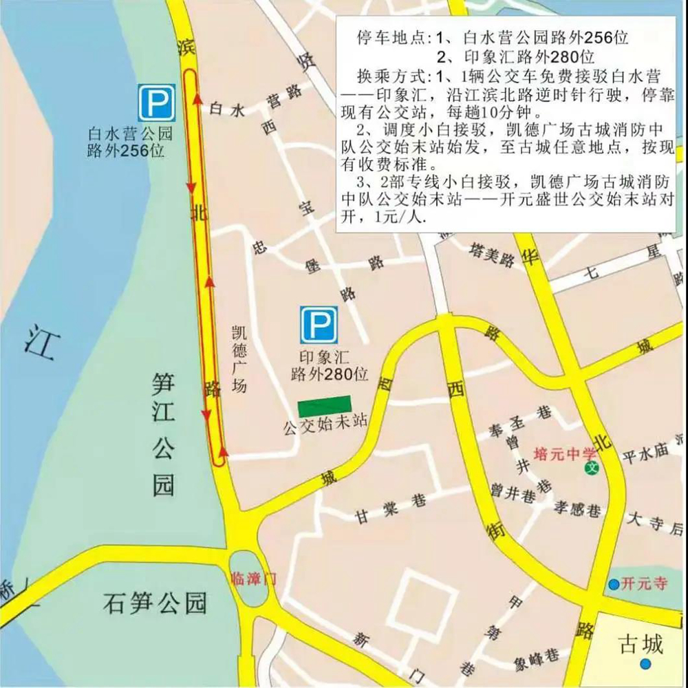 1. 公交公司将安排1辆公交车沿白水营-印象汇免费接驳