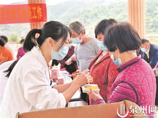 泉州网5月7日讯 (记者 陈灵 黄耿煌 通讯员 赵颖嵘 石倩雯 文/图)昨天,南安市眉山乡小眉村67岁的石攀良一大早就赶到村老年活动中心,拿到体检报告后,他将医保卡递给眉山乡卫生院的医生,经过问诊、结算,取到常年吃的降压药。“太方便了!”石攀良感慨地说。