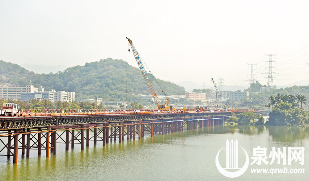 连日来,在施工人员的持续奋战下,省重点项目武荣大桥钢栈桥已经全线贯通,正在搭设水上施工平台,即将打下主桥第一桩,进入主体工程实质建设阶段。 武荣大桥是泉州城市外围快速路的重要节点,也是连接泉州动车站站前东西大道与南安、安溪区域的重要跨江通道。项目总投资9.4亿元,于2020年10月1日动工,建设周期2年。大桥起点从江滨南路以西起坡,跨越江滨南路、晋江、省道307线之后落地,终点与站前东西大道西段相接,全长2.23公里,主桥长1.29公里,主线采用双向六车道,设计通车时速60公里。大桥建成后,将进一步延展泉州城市脉络,推动南安和泉州市区连片发展。