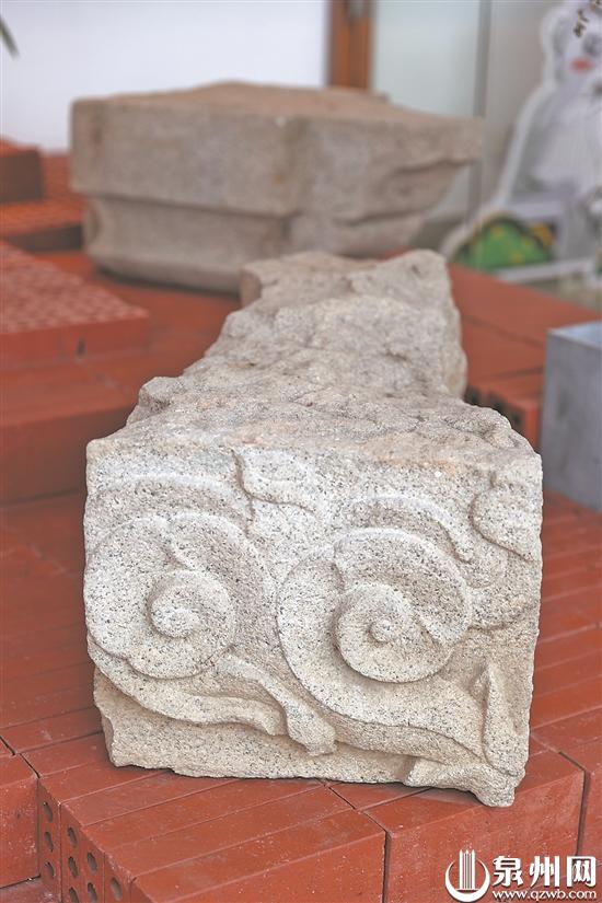 1990年出土的老君岩石室遗物花岗石构件,专家考证为宋代遗物。(吴嘉晓 摄)