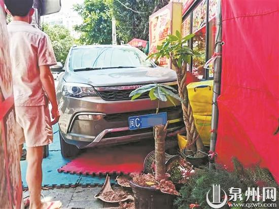 陈先生说,当天中午12时30分左右,他把车停在水头镇东南广场某便利店门口,几分钟后,车就不见了。民警查看监控录像后,在距离便利店20米开外找到了“失踪”的汽车。监控画面显示,陈先生停车的地点有点坡度,当陈先生停车离开后,小车发生溜车,一直溜到马路对面,撞到路边小吃摊的广告牌后才停了下来。还好溜车过程中没有撞到其他车辆和行人,但将小吃摊摆放的花盆撞碎了。