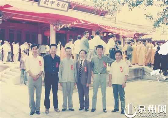 1989年,林汉宗、吴永安、李伯瑜、傅金星、林剑仆、陈逸亭(从左到右)参加承天寺复建开光典礼。