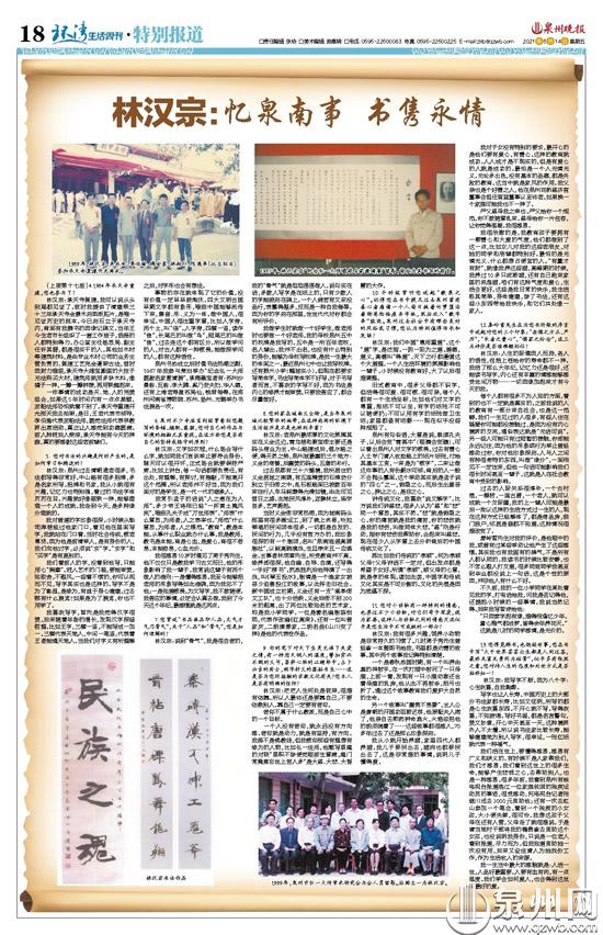 林汉宗:泉州过去清朝遗老很多,书法都写得非常好。中山路有很多招牌,多是名家所写。招牌和书家,我从小就很有兴趣,记忆力也特别强,看过的书法字体历历在目。兴趣就好像磁铁一样,能够塑造一个人的成就。我走到今天,是多种缘分造就的。