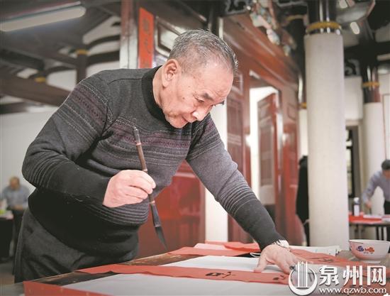 每年春节,林汉宗都到泉州历史文化中心写春联。(木票 摄)