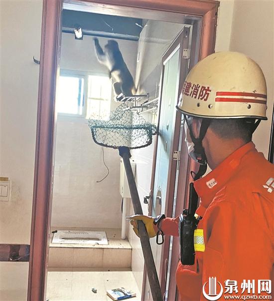 “这只猴子可能是从房子后面的山上跑过来的,到家里就四处乱蹿,后来跑到卫生间房梁上才消停一些。怕它伤人,我们也没有专业抓捕工具,所以就报警求助。”房主介绍道。